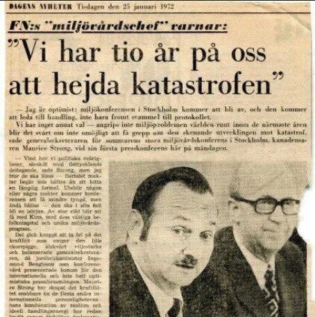 Inför den första miljökonferensen i Stockholm 1972, utarbetade Maurice Strong “Only One Earth: The Care and Maintenance of a Small Planet” tillsammans med ekonomen Barbara Ward och mikrobiologen Rene Dubos. Rapporten summerade rönen från 152 ledande “experter” från 58 länder som en förberedelse för det globala FN-mötet om miljön där Maurice Strong skulle vara ordförande. Samma år skapade han United Nations Environment Program (UNEP) och gjorde sig en förmögenhet som affärsman för Alberta Oil och mineralindustrier. Han var också god vän med David Rockefeller satt en period som ordförande för Romklubben. Dessutom var han mannen som skapade skrämselpropagandan om den globala uppvärmningen: